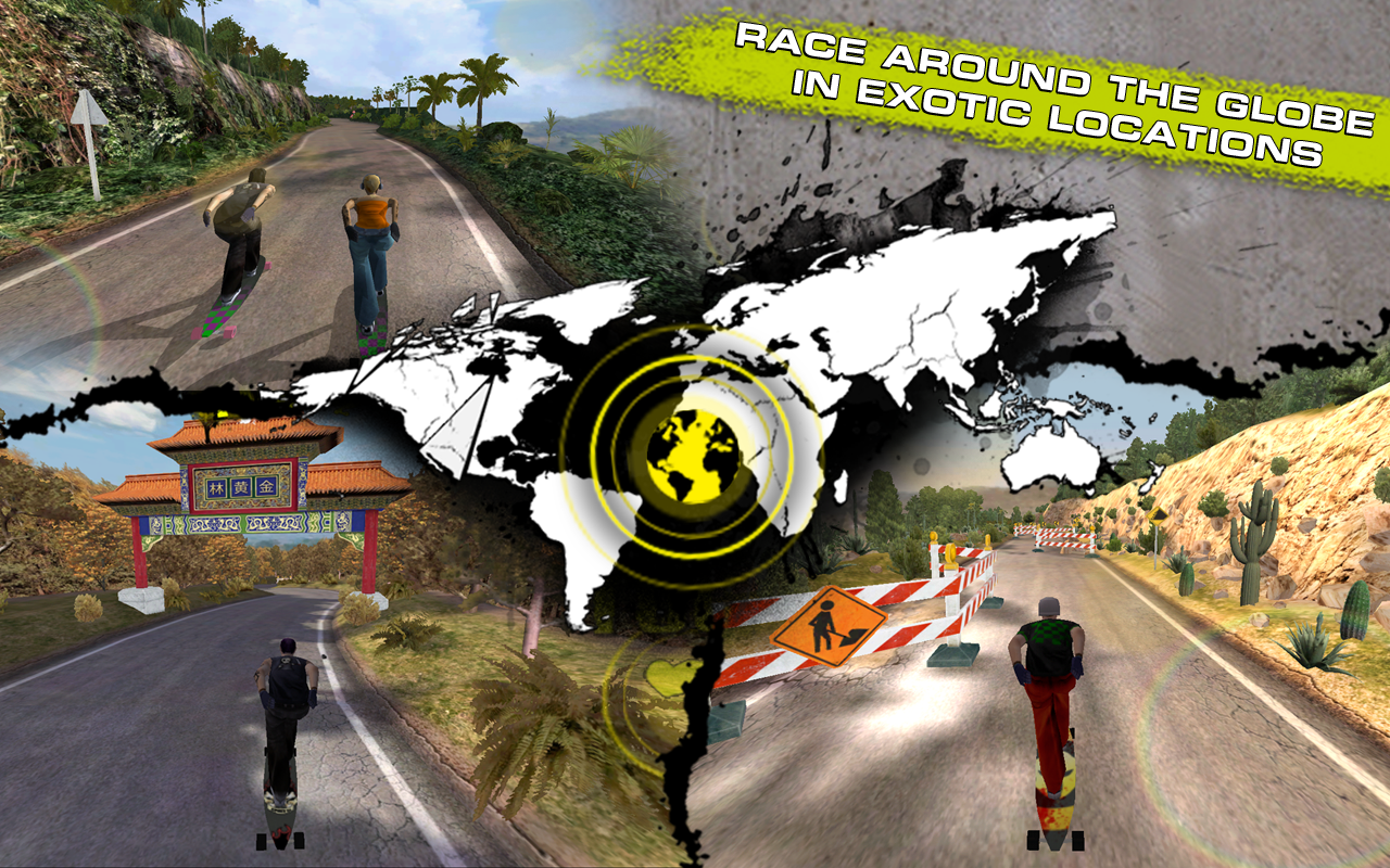 Robek melewati kompetisi pada naik sengit ke garis finish terlebih dahulu longboard game balap Dunia, Downhill Xtreme!